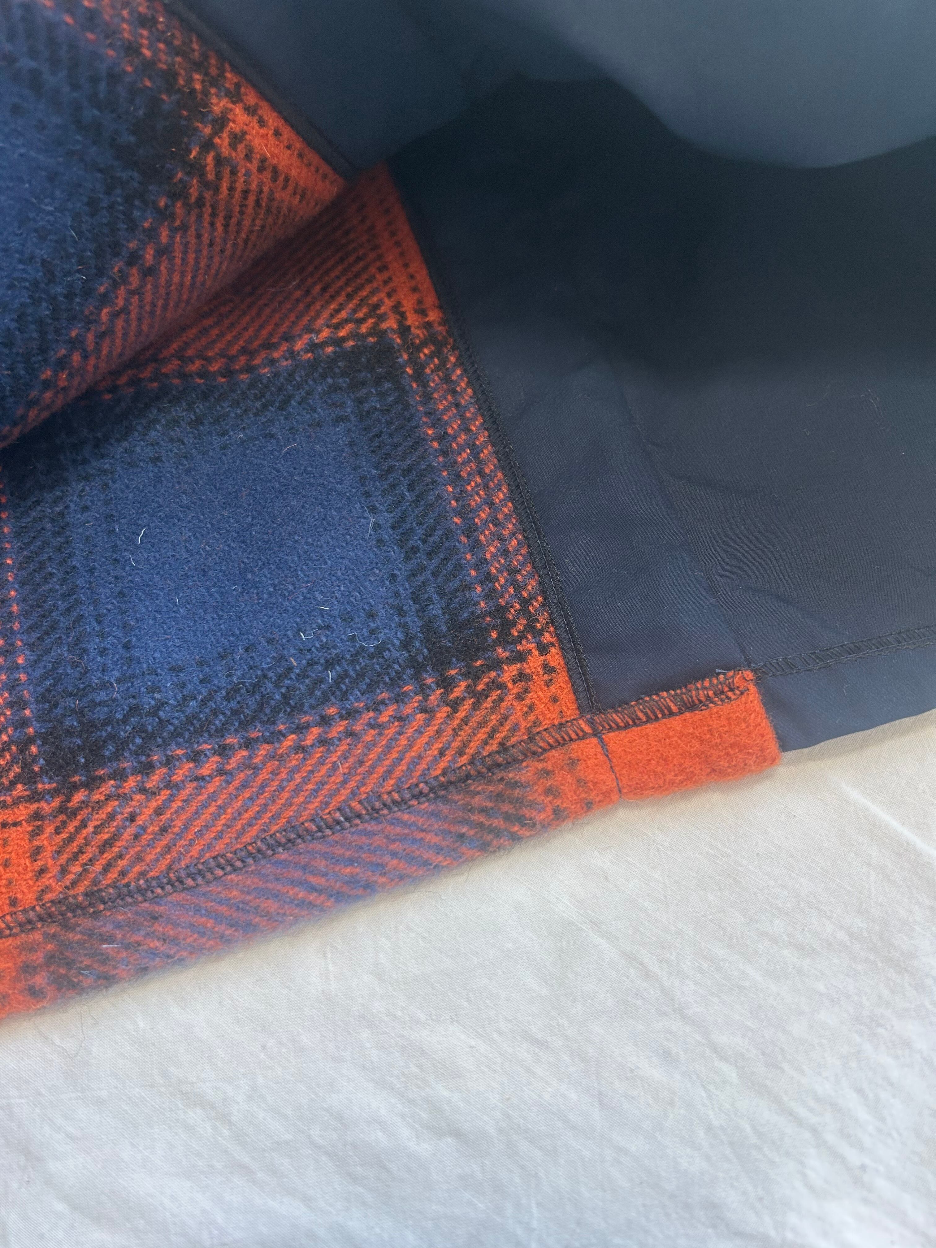 オレンジとネイビーのチェック生地にコットンジャガード生地を合わせて作りました^^