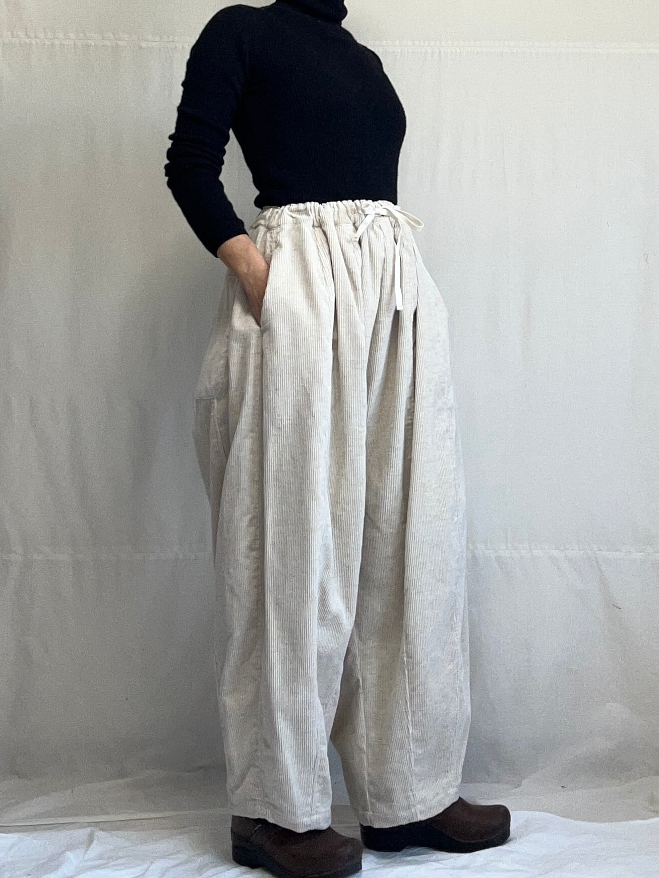 コットンコーデュロイのワイドパンツです。