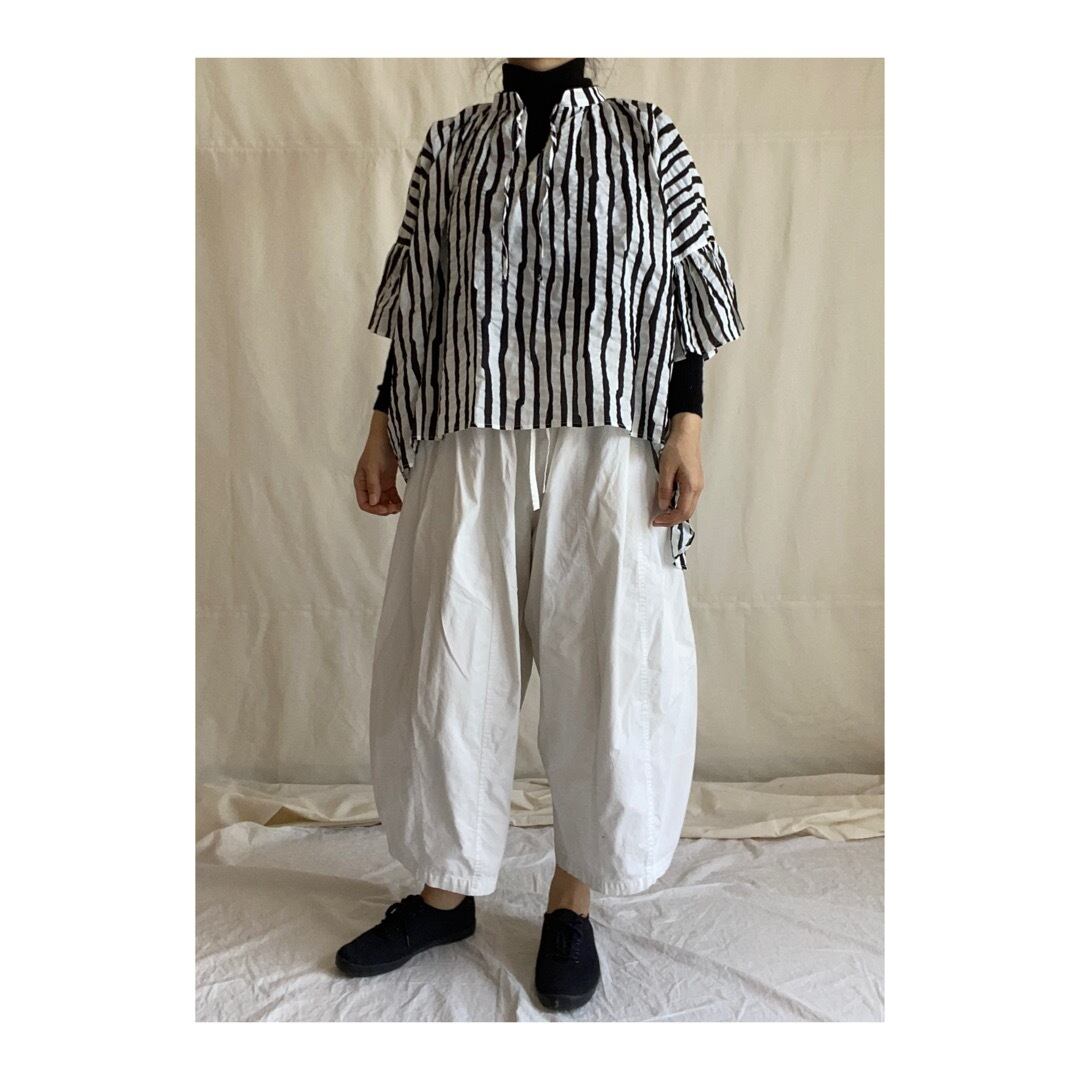 ギャザーたっぷりフリル袖ブラウス(ストライプ)