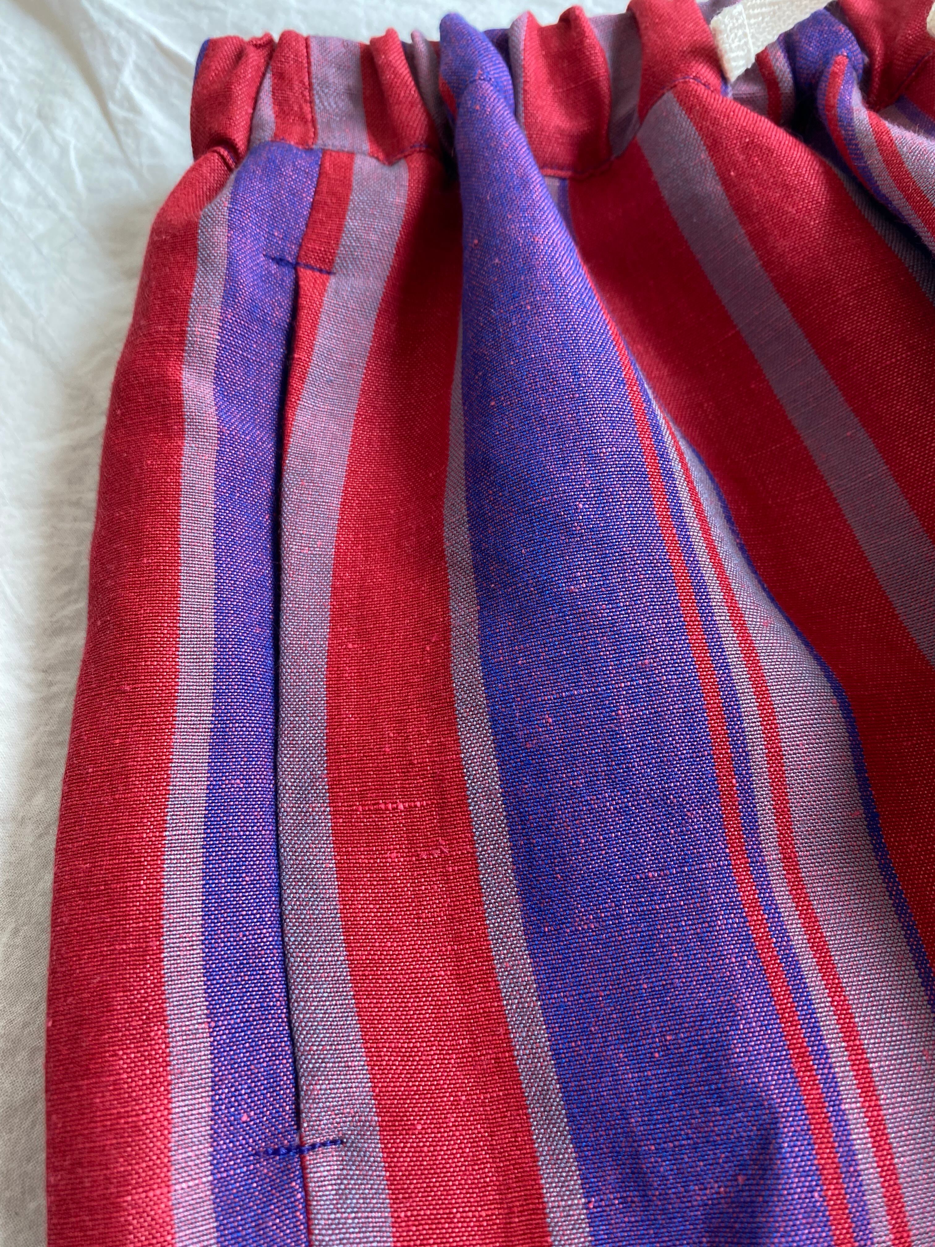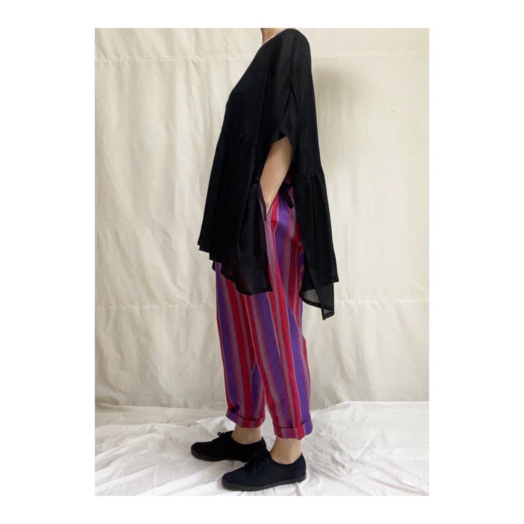 ピンクとパープルのストライプがお洒落なサルエルパンツです。