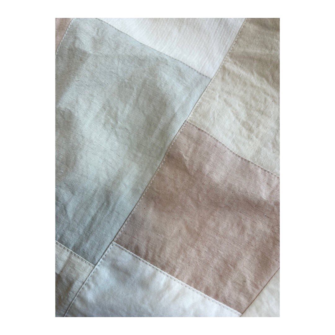 色はホワイト、生成り、ピンク、ブルーの柔らかいペールトーンの生地を繋ぎます。