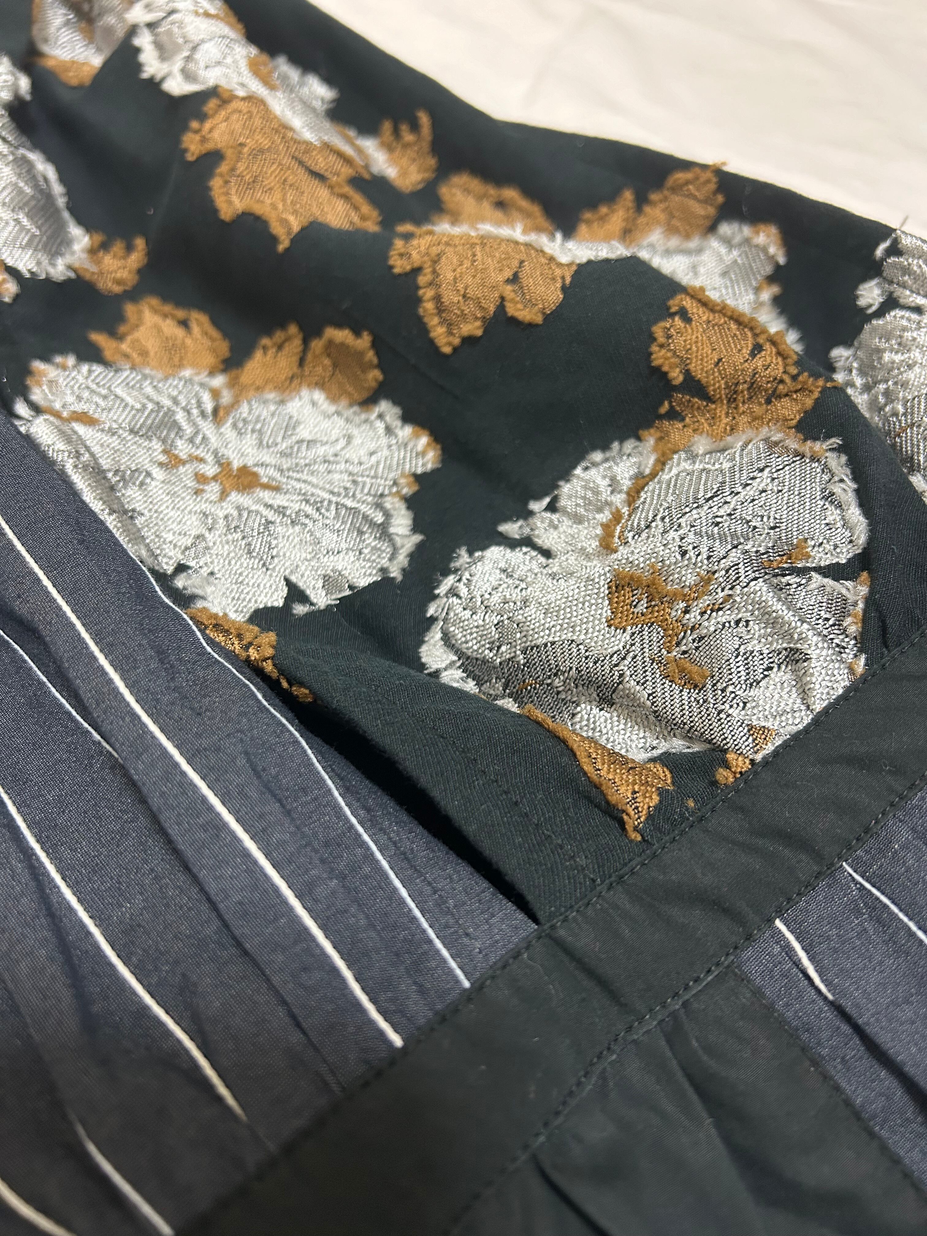 ジャガード生地を使ったパッチワークワンピース。